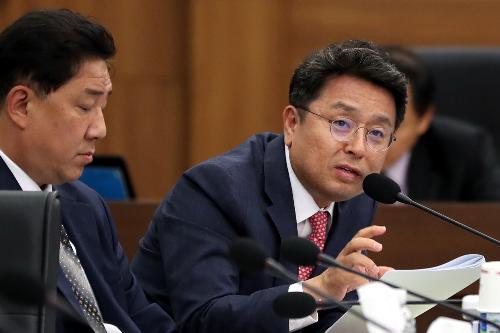 더불어민주당 이철희 의원이 지난16일 오후 서울 용산구 합동참모본부에서 열린 합동참모본부 등에 대한 국회 국방위원회의 국정감사에서 정경두 합참의장에게 질의를 하고 있다. 사진/뉴시스