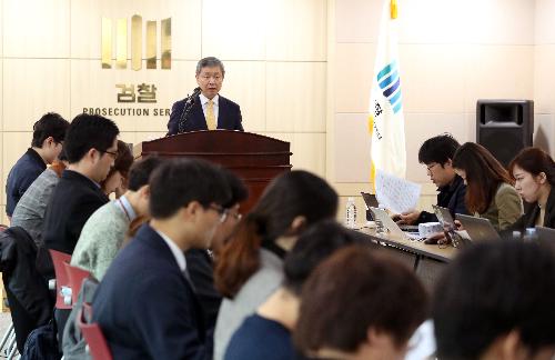 박성진 서울북부지방검찰청 차장검사가 1일 오전 서울 도봉구 서울북부지검에서 '어금니 아빠' 이영학 수사 관련 브리핑을 하고 있다. 사진/뉴시스