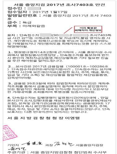 보이스피싱 사기범이 보낸 가짜 검찰청 공문서. 사진/금융감독원