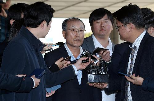 이명박 정부 시절 국정원의 공영방송장악에 협조한 혐의를 받고 있는 김재철 전 MBC 사장이 지난 30일 오후 서울 서초구 서울중앙지검에 출석하며 취재진의 질문에 답변하고 있다. 사진/뉴시스