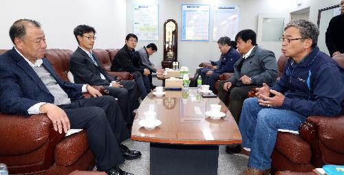 최저임금 인상에 따른 임금보전 예산안을 두고 여야가 격돌 중인 가운데 업계에선 지원규모에 대한 아쉬움을 토로하는 한편 최저임금 대책에 대한 근본적 고민을 주문하고 있다. 사진은 지난 25일 오후 정부세종청사에서 문현근, 김종인 등 최저임금위 근로자위원들이 어수봉 최저임금위원장을 만나 면담하는 모습. 사진/뉴시스