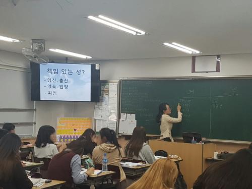 미혼모 협회 '인트리'의 회원이 지난 9월 20일 서울 중학고등학교에서 성교육을 진행하고 있다. 사진/서울시