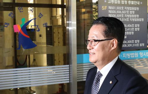 박지원 국민의당 전 대표가 6일 오전 서울 서초구 서울중앙지방법원에서 열린 '박근혜 명예회손' 8차 공판에 출석하고 있다. 사진/뉴시스