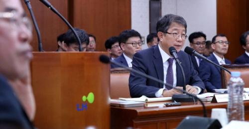정부 지원을 받는 한국토지주택공사(LH) 최근 사내유보금을 크게 늘렸다는 지적이 8일 제기됐다. LH의 유동금융자산은 최근 5년 새 1조9000억원이나 증가했다. 사진은 지난 달 13일 박상우 한국토지주택공사 사장이 LH 경기지역본부에서 열린 국회 국토교통위원회 국정감사에서 위원들의 질의에 답변하는 모습. 사진/뉴시스