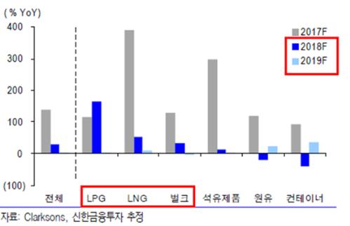 2017~19년 선종별 발주량 증감률 전망. 자료/신한금융투자
