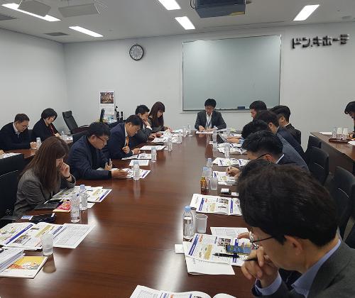 '삼성증권 글로벌 프론티어'가 불황에도 성장을 유지해 온 유통업체인 도쿄의 '돈키호테' 본사를 찾아 IR부 이쿠미 오노다(Ikumi Onoda) 서브치프와 세미나를 갖고 있다. 사진/삼성증권