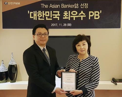 [뉴스토마토 백아란 기자] 신한은행은 싱가폴 금융전문지 아시안뱅커(The Asian Banker)가 주관한 ‘아시안 뱅커 프라이빗 웰스 어워드(The Asian Banker Private Wealth Awards) 2017’에서 대한민국 최우수 프라이빗 뱅크(Private Bank)로 선정됐다고 30일 밝혔다.
