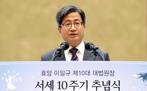 이어 “이러한 어지러운 상황에서 재판의 독립을 지켜내는 것이 대법원장의 첫째가는 임무임을 오늘 효암 선생님의 생애 앞에서 새삼 명료하게 깨닫는다”며 “어떠한 경우에도 위축됨 없이, 법관이 오로지 헌법과 법률에 의해 그 양심에 따라 재판하도록 사법부 독립을 수호하는 것은 우리 시대에도 여전히 숭고한 사명”이라고 강조했다.