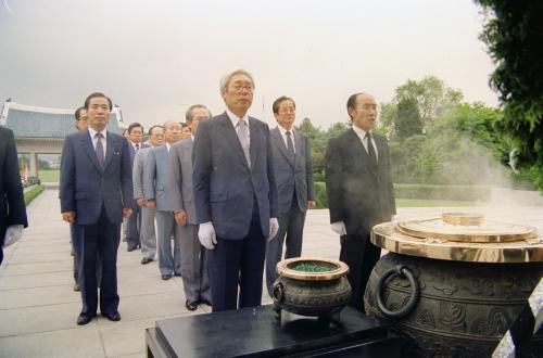 이일규 대법원장이 취임 하루 전인 1988년 7월5일 대법원 관계자들과 함께 현충원에 참배하고 있다. 사진/대법원