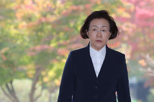 신연희 강남구청장이 지난 3일 오후 서울 서초구 서울중앙지법에서 열린 3차 공판에 출석하기 위해 법정으로 향하고 있다. 사진/뉴시스