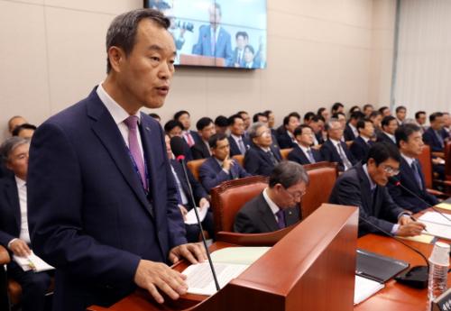 김영민 한국광물자원공사 사장이 지난 10월 19일 국회 산업통상자원위원회 국정감사에 출석해 인사말을 하는 모습. 사진/뉴시스