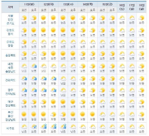 그 밖의 날은 고기압의 영향으로 대체로 맑은 날씨를 보이겠다.