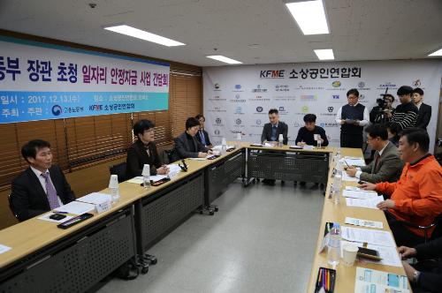 최승재 소상공인연합회장은 "사실 그간 일자리 안정자금이 국회에서 확정이 안된 상태였어서 세밀한 대화가 안됐었다. 여러 부분에 대해 앞으로 해야 할 일이 많다고 생각한다"며 "임금인상, 소득성장과 관련해 정부와 같이 보조를 맞추는 것은 이견이 없다. 다만 제조업과 유통서비스관련, 제도적 절차에서 실행에 있어서 보완이 필요하지 않을까 싶다. 최저임금을 부담없이 지급할 수 있게끔 근본적인 소상공인 지원대책이 나와야 한다"고 강조했다.