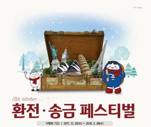 [뉴스토마토 백아란 기자] 기업은행은 환전·송금 고객을 대상으로 ‘IBK 윈터(Winter) 환전·송금 페스티벌’을 진행한다고 20일 밝혔다.