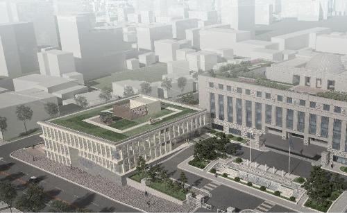 국기게양대 좌측 도서관 신축과 주변 담장을 제거한 모습을 그린 헌법재판소 조감도. 사진/헌재