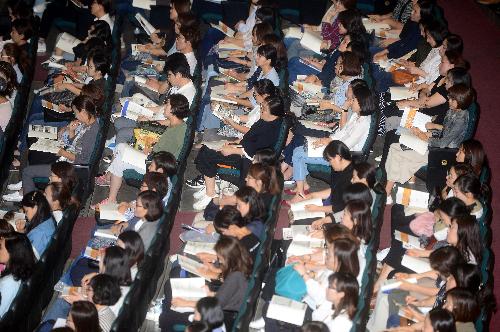 지난 9월19일 오후 서울 중구 이화여고 유관순기념관에서 열린 '서울 자사고 연합설명회'에 참석한 학부모와 수험생들이 오세목 자사고연합회장의 기조발제를 경청하고 있다. 사진/뉴시스