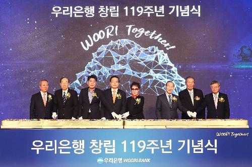 행사는‘대한민국 금융의 뿌리깊은 나무’라는 컨셉으로 진행됐으며, 우리은행 119년의 역사와 1등 종합금융그룹 도약을 위한 비전을 담은 기념영상 시청, 박필준 노조위원장과 최병오 비즈니스클럽 회장의 축사 등으로 진행됐다.
