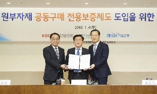 이번 협약에 따라 기업은행과 중기중앙회는 신용보증기금에 보증재원을 특별출연하고, 신용보증기금은 원·부자재 공동구매 중소기업에게 보증서를 발급하기로 했다.