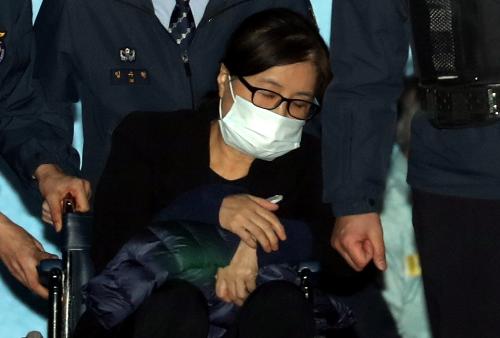 1심에서 징역25년, 벌금1185억원, 추징금 77억 9735만원을 구형받은 ‘비선실세’ 최순실이 지난 12월14일 오후 서울 서초구 서울중앙지방법원에서 휠체어를 타고 호송차에 오르고 있다. 사진/뉴시스