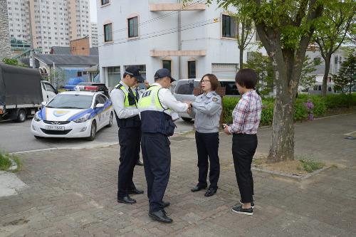 강원 횡성경찰서(서장 이병하)는 2016년 4월28일 스마트워치를 이용한 보복범죄 피해자의 신변보호 대응 능력향상 훈련을 실시하고 있다. 사진/뉴시스