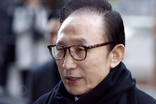 이명박 전 대통령이 17일 국정원 특수활동비 의혹 등 입장을 밝히기 위해 서울 삼성동 사무실로 도착하고 있다. 사진/뉴시스