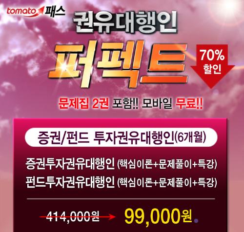 [뉴스토마토 강명연 기자] 금융자격증 교육전문 토마토패스는 2018년 시험대비 증권투자권유대행인, 펀드투자권유대행인 퍼펙트 패키지를 개설했다고 25일 밝혔다.