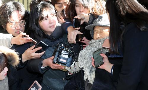 국정원으로부터 억대 자금을 수수한 혐의를 받고 있는 이명박 전 대통령의 친형 이상득 전 새누리당 의원이 피의자 신분으로 조사를 받기 위해 26일 오전 서울 서초구 서울중앙지방검찰청으로 출석하며 취재진들의 질문을 받고 있다. 사진/뉴시스