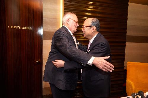 지난 1월 26일 김승연 한화 회장이 서울 중구 더플라자호텔에서 미국 헤리티지재단의 에드윈 퓰너 회장과 만났다. 사진/한화