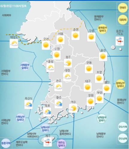 [뉴스토마토 조용훈 기자] 내일은 전국이 대체로 맑은 가운데 충남 서해안과 전라·제주에는 눈이 내리다 오후 들어 차차 그치겠다.