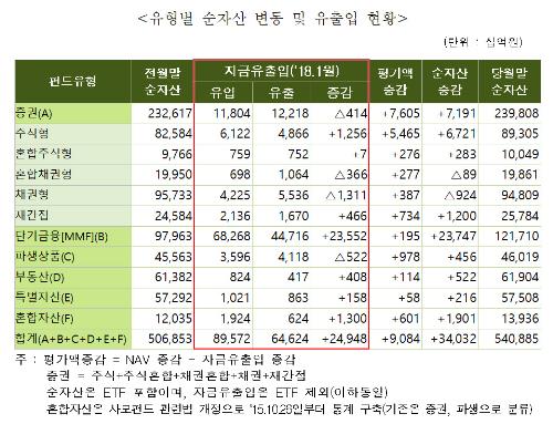 8일 금융투자협회는 '2018년 1월 국내 펀드시장 동향 분석' 결과를 발표했다. 그 결과, 주식형펀드는 6조7000억원 증가했고, 채권형펀드는 9000억원 감소했으며 머니마켓펀드(MMF)는 23조7000억원 급증했다.