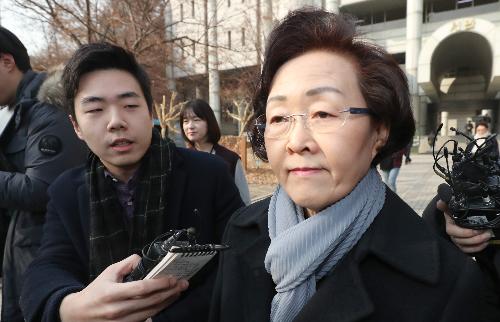 신연희 강남구청장이 9일 오후 서울 서초구 서울중앙지방법원에서 열린 문재인 대통령에 대한 명예훼손 선고공판을 마치고 법정을 나서고 있다. 법원은 신 구청장에게 벌금 800만원을 선고했다. 사진/뉴시스