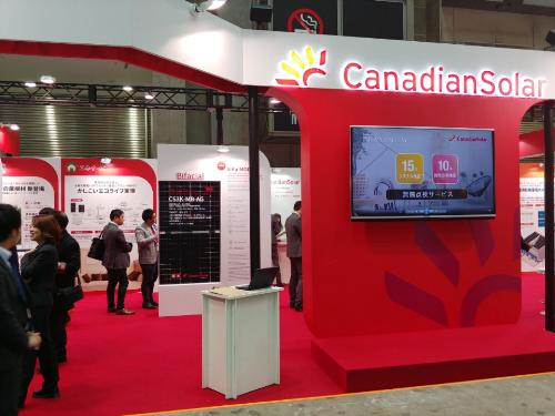 2월28일부터 3월2일까지 열린 '2018 일본 태양광 전시회(PV EXPO)'에서 중국의 캐나디안솔라가 마련한 부스. 사진/뉴스토마토