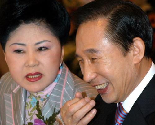 2007년 2월 서울 고려대 교우회관에서 열린 고경아카데미 초청 신년특강에 참석한 당시 이명박 전 서울시장과 김소남 고대 교우회장이 이야기를 나누며 미소짓고 있다. 사진/뉴시스
