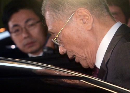 이명박 대통령의 큰형인 이상은 다스 회장이 2012년 11월 1일 오후 서울 서초구 서초동 특검 사무실에서 내곡동 사저 부지 의혹 사건의 참고인으로 조사를 받은뒤 걸어 나가고 있다. 사진/뉴시스