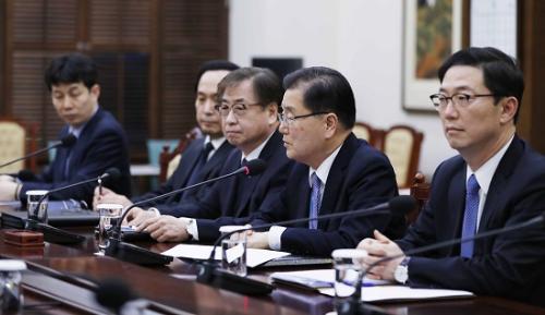 정 실장은 또 “대화가 지속되는 동안 북측은 추가 핵실험 및 탄도미사일 시험발사 등 전략도발을 재개하는 일은 없을 것임을 명확히 했다”고 말했다. 그는 “북측은 핵무기는 물론 재래식 무기를 남측을 향해 사용하지 않을 것임을 확약했다”며 “북측은 평창올림픽을 위해 조성된 남북간 화해와 협력의 좋은 분위기를 이어나가기 위해 남측 태권도시범단과 예술단의 평양 방문을 초청했다”고 전했다.