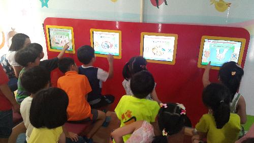 서울시 이동안전체험교실에 참여한 어린이들이 교육기자재를 탑재한 버스에서 ‘TV퀴즈’를 풀고 있다. 사진/서울시