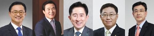 (왼쪽부터)유상호 한국투자증권 사장, 김해준 교보증권 사장, 이진국 하나금융투자 사장, 나재철 대신증권 사장, 이현 키움증권 사장 내정자. 사진/각사