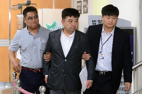 박근혜를 사랑하는 모임(박사모) 회장 정광용(가운데)씨가 지난해 5월24일 오후 서울 서초구 서울중앙지방법원에서 열린 구속 전 피의자심문을 마친 후 서울 종로경찰서로 향하고 있다. 사진/뉴시스
