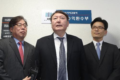 지난달 22일 오후 서울 서초구 서울중앙지방검찰청에서 열린 범죄수익환수부 현판식에서 윤석열 서울중앙지검장이 축사를 하고 있다. 사진/뉴시스