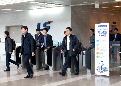 LS전선은 2일 정부의 노동시간 단축 방침에 따라 사내에 주 40시간 근무를 정착시키기로 하고 이달부터 정시 출퇴근제를 실시하기로 했다. 올해 7월 최대 근로시간을 주당 68시간에서 52시간으로 단축하는 근로기준법 개정안 시행을 앞두고 선제적으로 대응하겠다는 조치다.
