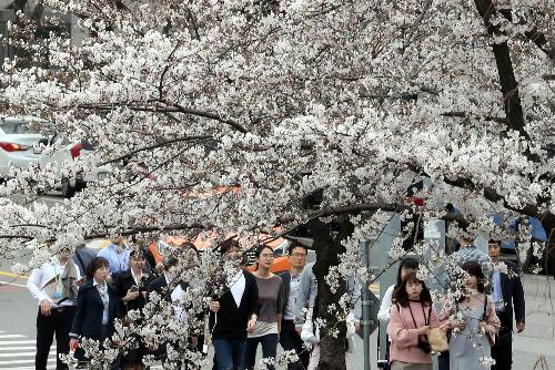벚꽃이 서울 전역에 활짝 핀 가운데 지난 3일 오후 시민들이 서울 여의도 윤중로 벚꽃길을 걷고 있다. 사진/뉴시스