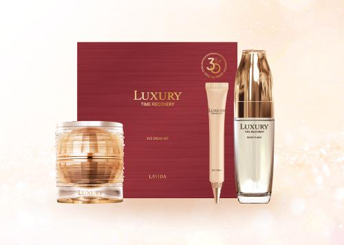 라비다 럭셔리 타임리커버리는 리커버리 팩터와 피부 힘을 길러주는 EGF, 피부 사이의 신호 전달을 도와주는 파워셀™등 유효성분을 함유해 주름과 탄력 케어에 효과적인 라인이다. 이번 30주년 기획 세트는 ‘라비다 럭셔리 타임리커버리 아이크림’과 ‘라비다 럭셔리 타임리커버리 에센셜라이저’로 구성했다.