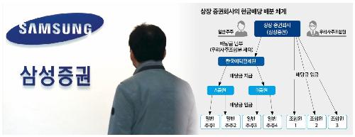 삼성증권의 발행주식 8930만주, 발행한도 1억2000만주를 크게 웃도는 수치다. 삼성증권은 애초에 직원들에게 나눠 줄 주식도 갖고 있지 않았다. 실재하지 않는 주식이 시스템상에서 만들어지고 배당까지 이뤄진 것이다.