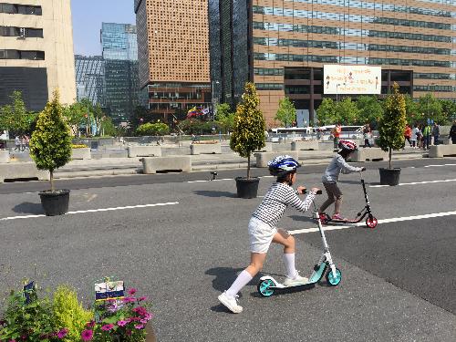 학생이 세종대로 ‘차 없는 거리’에서 킥보드를 타고 있다. 사진/서울시
