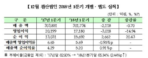IT를 제외한 670개사의 실적은 전반적으로 부진했다. 비IT업종 기업들의 1분기 매출액은 작년 같은기간 보다 0.34% 증가했지만 영업이익과 순이익이 각각 20.15%, 0.41% 감소했다. 제약의 경우 매출은 6.74% 증가했으나 순이익이 10.67% 줄었고, 건설·광업과 오락·문화, 운송은 매출과 순이익 모두 감소했다. 금융, 기타서비스와 유통, 전기·가스·수도업종만 매출과 순이익 모두 증가한 것으로 나타났다.