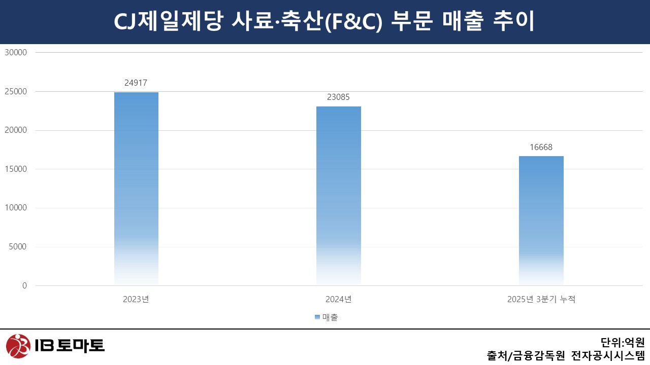 F&C 부문 매출은 2023년 2조4917억원에서 2024년 2조3085억원으로 줄었으며, 지난해 3분기 누적 기준으로는 1조6668억원에 그쳤다. 외형 성장세가 둔화되는 흐름이 이어지면서, 성장성이 낮은 사업을 정리하고, 비비고 중심의 식품 산업과 바이오 신사업에 전략적으로 집중하겠다는 의도로 풀이된다.