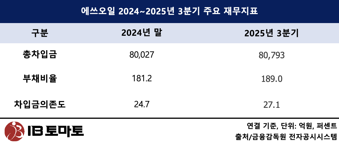 대규모 투자에 따른 재무부담 관리도 핵심 과제다. 2023년부터 샤힌 프로젝트 투자가 본격화되면서 에쓰오일의 순차입금 규모는 2023년 말 3조 8617억원에서 지난해 3분기 말 6조 7703억원으로 확대됐다. 같은 기간 부채비율 역시 138.7%에서 189.0%로 51,3%포인트나 상승했다.
