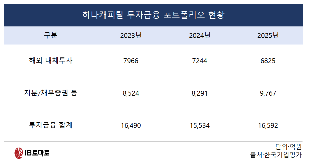하나캐피탈은 지난해부터 투자금융 자산을 다시 늘리면서 포트폴리오를 조정하고 있었다. 해외 대체투자를 줄이고 벤처투자 부문을 늘리는 방향이다.