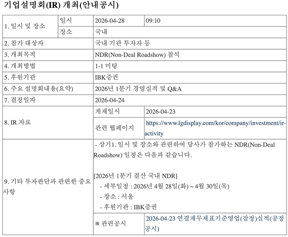 LG디스플레이의 IR행사공시(사진=금융감독원 전자공시시스템)
