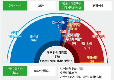 메뉴설정 홈 > 정치 > 정당 "결백 입증하고 돌아오겠다"…'성추행 의혹' 장경태, 민주당 탈당 2026.03.20 10:03 성추행 혐의를 받는 장경태 의원이 20일 "20년간 몸담았던 당을 떠나고자 한다"며 "당에 누가 되지 않도록 결백을 입증하고 돌아오겠다"고 밝혔습니다. 장경태 의원이 지난 19일 ... "미안하다 한마디 듣고 싶다"…이 대통령, '조폭 연루설' 사과 요구 2026.03.20 10:01 이재명 대통령이 20일 "정치적 목적으로 거짓의 무덤에 사람을 매장하는 일이 재발하지 않게 하려면 조작 폭로한 국민의힘이나 '그것이 알고 싶다'(그알) 같은 조작방송의 반성과 사... 개헌, 여야 합의는 어려워…국힘 이탈표에 달렸다 2026.03.19 18:23 6·3 지방선거와 동시 투표를 실시하기 위한 '개헌 시간표'가 촉박한 가운데 여야 합의로 인한 개헌안 처리는 어려울 전망입니다. 국민의힘이 졸속 개헌에 반대하는 입장을 유지하... 검찰개혁부터 조작기소 국조까지…다시 '필버 정국' 2026.03.19 18:08 국회가 다시 '필리버스터'(무제한 토론을 통한 합법적 의시진행 방해) 정국에 돌입했습니다. 민주당이 밀어붙이는 두 개의 검찰개혁법과 함께 '윤석열정권 정치검찰 조작기소 의혹 ... "성동 집값 상승이 치적이냐"…1등 정원오 '집중공격' 2026.03.19 18:05 민주당 서울시장 예비후보들이 19일 첫 합동토론회에서 각종 여론조사에서 1위를 달리고 있는 정원오 전 성동구청장을 향해 일제히 견제에 나섰습니다. 정 전 구청장의 과거 주택 ... "중소기업·소상공인 지원 필요"…당·정, '유가부담 완화' 추경 한뜻 2026.03.19 11:57 정부가 중동 사태에 따른 국내 경제 대응을 위해 추가경정예산안(추경) 편성에 돌입한 가운데 당·정이 중소기업과 소상공인 부담 완화를 위한 지원책이 필요하다고 의견을 모았습... 현역·중진 컷오프 논란에…이정현 "특정 인물 염두 없다" 2026.03.19 11:35 이정현 국민의힘 공천관리위원장이 6·3 지방선거 경선 후보 공천 논란에 "특정 인물을 두고 정치를 할 생각이 없다"라고 선을 그었습니다. 이정현 국민의힘 공천관리위원장이 19... "상임위원장 배분, 원점 재검토"…한병도, '국회법 개정' 언급 2026.03.19 11:31 한병도 민주당 원내대표가 19일 경제 문제를 다루는 국회 상임위원회에서 주요 법안이 지연되는 것을 두고 국민의힘에 "(여당) 간사 중심의 단독 회의 추진은 물론 일하지 않는 위원... 김영진 "김어준, '공소취소 거래설' 방송 사과해야" 2026.03.19 11:06 친명(친이재명)계 핵심 인사로 꼽히는 김영진 민주당 의원이 '대통령 공소 취소 거래설'이 김어준씨 방송에서 거론된 데 대해 "김어준 대표가 발언자(장인수 기자) 책임으로 다 떠넘... 장동혁 "검찰개혁, 국민 기만 사기극…법안 상정 포기해야" 2026.03.19 10:41 장동혁 국민의힘 대표가 19일 국회 본회의 상정을 앞두고 있는 중대범죄수사청(중수청)·공소청 설치법안과 관련해 "검찰개혁은 결국 '최악의 악'으로 결론이 났다"고 평가했습니다.... (지선 여론조사)②민주당 전남·광주 통합시장 후보 적합도, 민심·당심 민형배 '1위' 2026.03.19 06:00 민주당의 전남·광주 통합시장 후보 적합도 조사에서 민형배 의원이 30%에 달하는 지지를 받으면서 확실한 우위를 보였습니다. 김영록 전남지사와 신정훈 의원, 강기정 광주시장... (지선 여론조사)③전남·광주, 지방선거 표심…76.3% "민주당 후보" 2026.03.19 06:00 다가오는 6·3 지방선거에서 전남·광주 지역의 표심은 집권 여당인 민주당 후보에게 쏠렸습니다. 전남·광주 시민의 70% 이상이 이번 지방선거에서 민주당 후보에게 투표하겠... (지선 여론조사)⑤전남·광주 51.5% "민주-조국 합당 찬성" 2026.03.19 06:00 민주당 내부의 강한 반발로 민주당과 조국혁신당의 합당 논의가 6·3 지방선거 이후로 미뤄진 가운데 전남·광주 지역의 합당 찬성 민심은 절반을 약간 웃돌았습니다. 30% 이상... (지선 여론조사)⑥전남·광주, 민주-조국 합당 시점?…"8월 전대 후"-"6월 지선 후" 팽팽 2026.03.19 06:00 전남·광주 지역에선 민주당과 조국혁신당의 적절한 합당 시점으로 '6월 지방선거 직후'와 '8월 민주당 전당대회 이후'를 선택한 응답이 20%대 중반을 차지하면서 팽팽하게 맞섰... (지선 여론조사)⑦민주 차기 당대표…전남·광주, 정청래 33.7% 대 김민석 28.8% 2026.03.19 06:00 민주당의 차기 당권을 놓고 전남·광주 지역의 민심은 어느 한쪽으로 쏠리지 않았습니다. 정청래 대표와 김민석 국무총리의 지지율이 오차범위 내로 우열을 가늠하기 어려웠습... (지선 여론조사)①첫 전남·광주 통합시장에 민형배 '선두'(종합) 2026.03.19 06:00 민형배 28.0%김영록 19.8%신정훈 12.3%강기정 10.0%주철현 5.0%정준호 2.1%이병훈 1.7% [진보층 대상 민주당 전남·광주 통합시장 후보 적합도]민형배 32.6%김영록 20.1%신정훈 11.9%강기정 1... 여당 주도로 중수청·공소청법 법사위 통과…국힘 표결 불참 2026.03.18 21:24 민주당이 추진해온 검찰개혁 후속 법안인 중대범죄수사청(중수청)·공소청 설치법안이 18일 국회 법제사법위원회를 통과했습니다. 야당인 국민의힘은 범여권의 강행에 반발하며 ... 이진숙 카드 초읽기…커지는 '김부겸 등판론' 2026.03.18 18:46 국민의힘 공천관리위원회가 6·3 지방선거 공천에서 대구 현역 중진 의